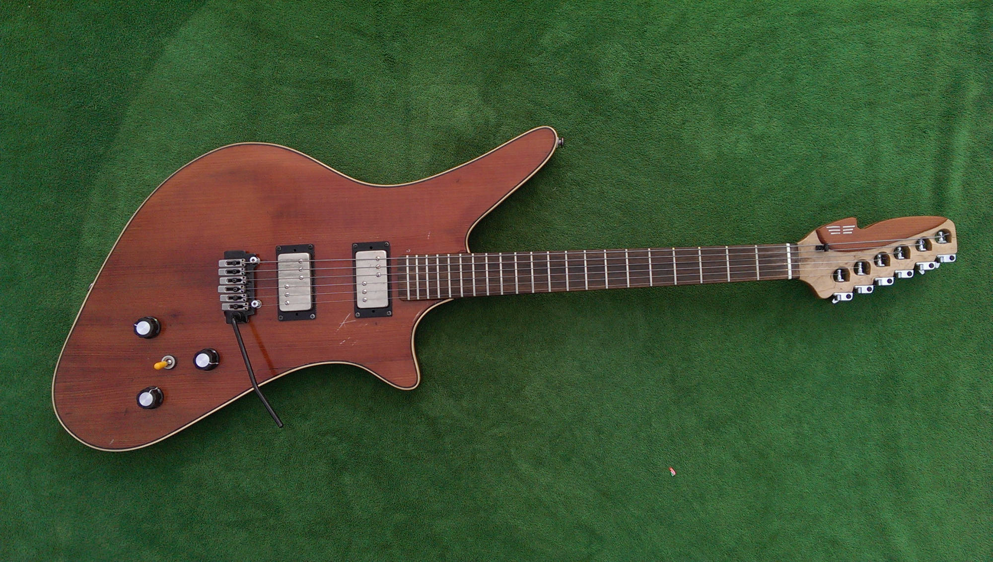 The Hyperion reverse headstock maximizes proper benefits of string length vs. tension. That is, longer length on bass string yields a tighter feel and stronger fundamental whereas the shorter length on the treble strings facilitates ease of bending and allows the player to use a heavier gauge string for stronger tones. The Mezmer reverse slotted headstock design is an innovative solution to the usual flipped headstock problem of uncomfortable access to tuners, with the Mezmer 6 on a side slotted style, a player can reach over quickly to make tuning adjustments during a performance with ease.